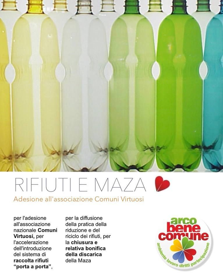 - Incentivare con ogni mezzo la raccolta differenziata dei rifiuti, che dovrebbe arrivare almeno all'80 %, facilmente raggiungibile attuando In prospettiva il sistema di raccolta porta a porta nel 100 % della superficie comunale, in modo da sostituire il sistema misto (porta a porta in periferia, raccolta stradale in Centro) che dovrebbe a breve prendere il via
