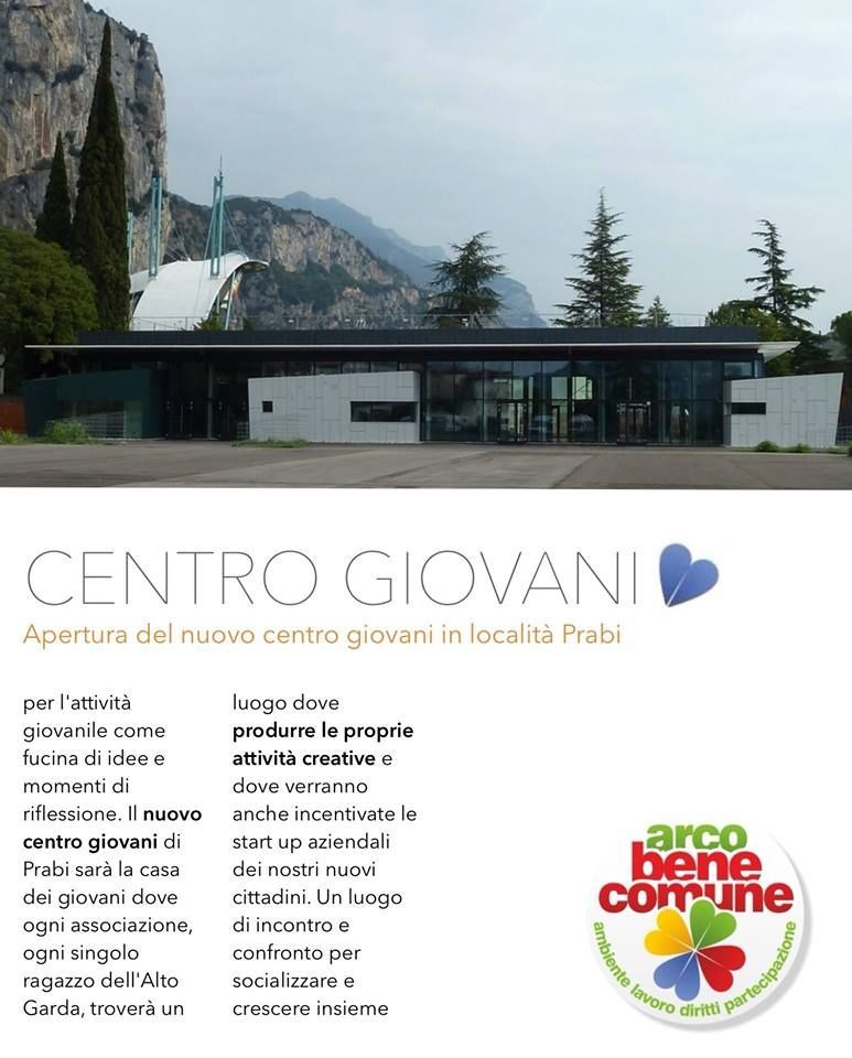 L'aggregazione giovanile deve e potrà essere un'opportunità con l'apertura del nuovo Centro Giovani a Prabi: un riferimento ludico e creativo che saprà stimolare anche l'opportunità di "fare officina" e connettere i giovani al mondo del lavoro attraverso nuove start-up.